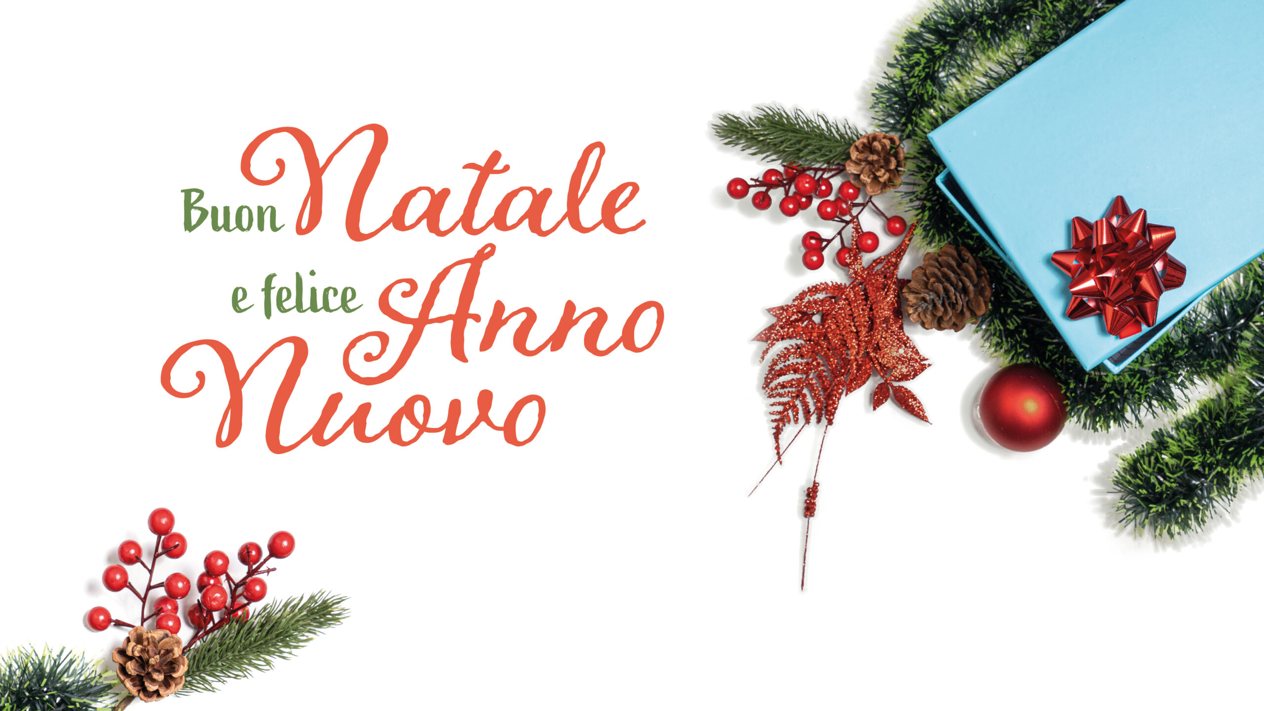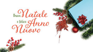 Banner con auguri natalizi in stile classico indicante “Buon Natale e felice anno nuovo” con decorazioni adatto alle front page dei social media
