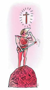 De rots staat er nog steeds. Het is nu een wild begroeide heuvel waaraan een druk plein ligt en waar het krioelt van de rode stadsbussen. Rode rots, rode bussen… Het is duidelijk dé kleur hier. Ook zeven kilometer verderop vinden we een verwijzing terug in een straatnaam: Via Grottarossa. We gaan in die straat weer een bar binnen, want het barleven is geen bar leven, en raken in gesprek met de eigenaresse. Wij vinden dat we inmiddels heel ver weg zijn van het centrum, maar de vrouw zegt dat de binnenstad juist zo dichtbij is. “Neem daar bij die bushalte bus 301 en die brengt je naar Lepanto.” Ze zal vast metrohalte Lepanto bedoelen, maar ik weet toch zeker dat Lepanto de oude naam is van de Griekse havenstad Nafpaktos, waar ooit een van de grootste zeeslagen uit de wereldgeschiedenis heeft plaatsgevonden. Daar was ongetwijfeld ook de nodige ruber mee gemoeid. Het laat maar weer zien hoeveel boeiende (of bloedige) verbanden er te ontdekken zijn in de Romeinse periferie. •